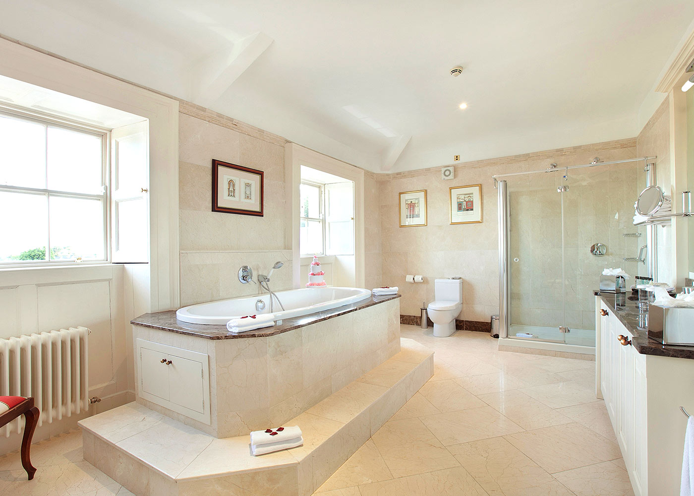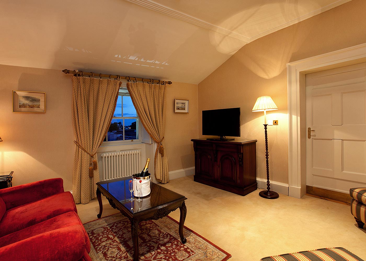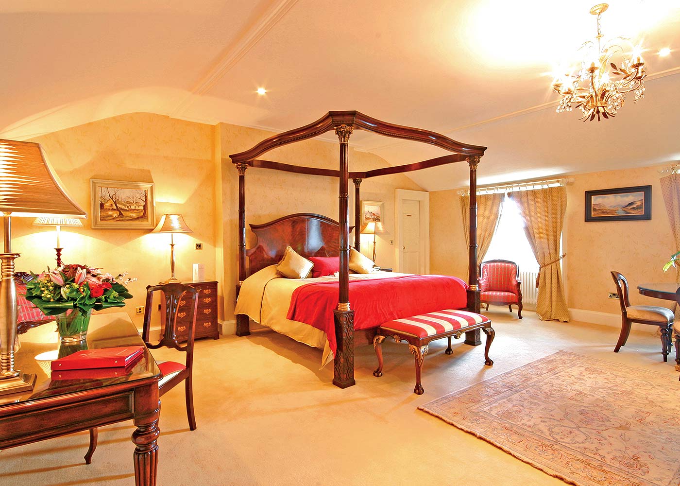 The Synolda Suite is Dunboyne’s most magnificent Suite. Unique in character, it retains its old world charm and offers an exceptional experience. The only guest room located in the Georgian House, it occupies its entire top floor. Featuring a plush four poster king size bed, antique furniture, full length Cheval mirror & a bathroom with deep soaker bathtub.